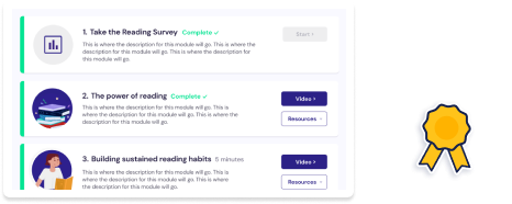 As well as training and ongoing support to maximise your impact, we include Reading Matters: 10 short CPD videos on reading pedagogy plus materials for running school CPD sessions.
