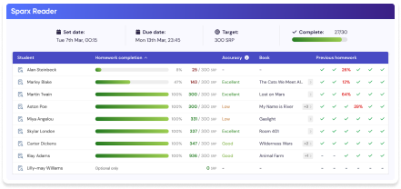 The Sparx Reading Test allows you to measure students' progress through the year.